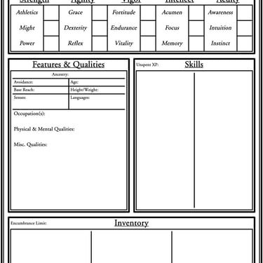 All character sheets (presently only the general version) are available on this page. Image versions for one's own modification are included to the right.